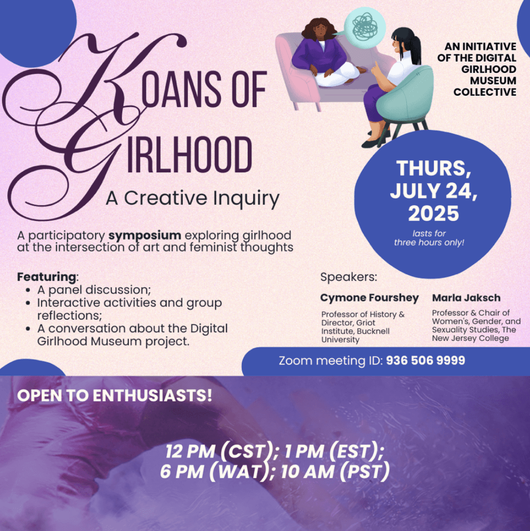 This project is a step towards generating a discourse, through the prism of art, about how girlhood is often marginalized in adult-centric ideological frameworks like feminism(s). The project has thus far unfolded in two phases: First, as an online workshop held on July 24, 2025, in which different female stakeholders from different institutions and walks of life engaged in conversations about girlhood and its place in feminist thought. During the workshop, collaborators, all of whom are dedicated to different artistic mediums and disciplines, artistically reflected on their experiences as girls and how these experiences have shaped their artistic careers and lifestyles. They also reflected deeply on the girls they were, how it has influenced their perspectives on the girls they hope to be, as well as the challenges that come with articulating girlhood experiences, struggles, and aspirations within the realm of the different kinds of feminisms they ideologize or embody. There was a panel discussion with two speakers - Professors Cymone Fourshey and Marla Jacksch, humanities scholars who explored the representation of girls in (Black and African) feminist studies and non-studies.