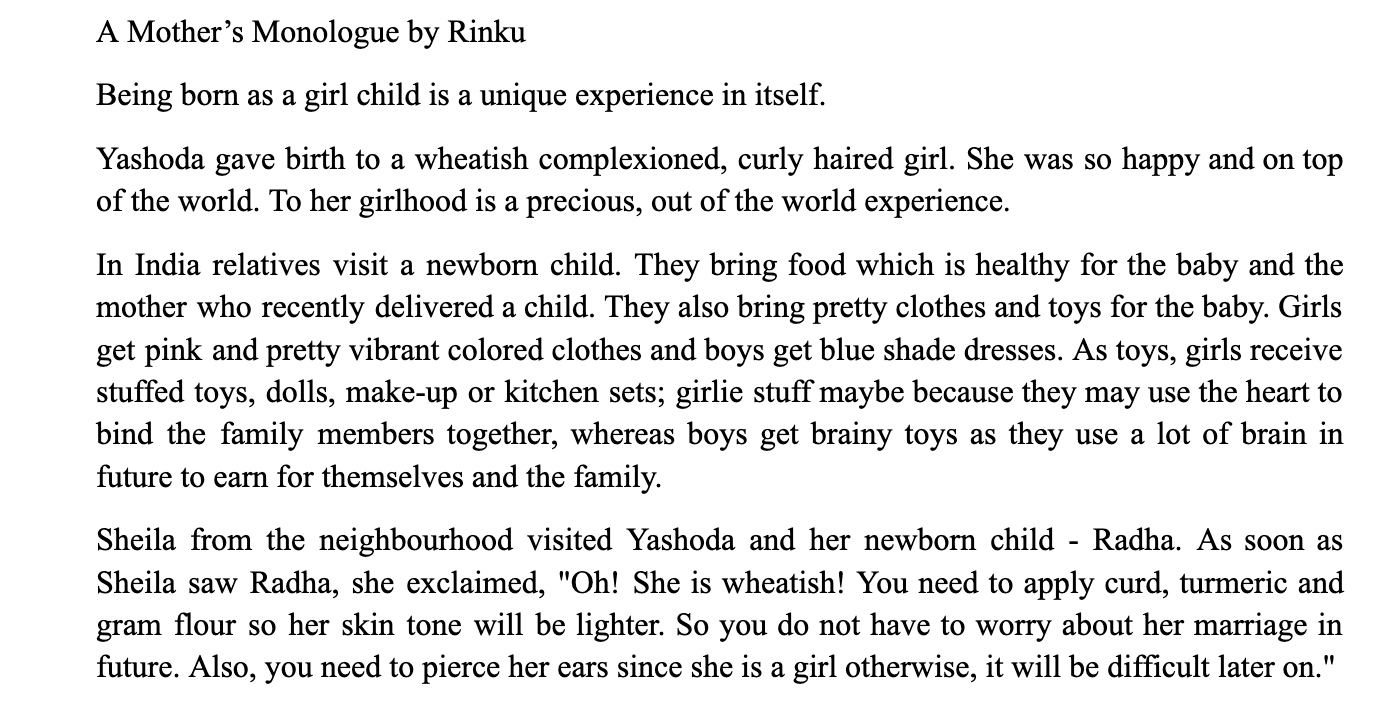 A Mother's Monologue & Girldom