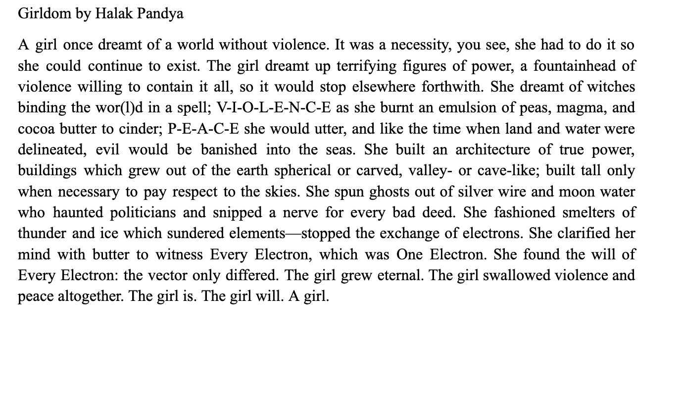 Two flash fiction pieces; a collaboration between mother and daughter thinking about girlhood: